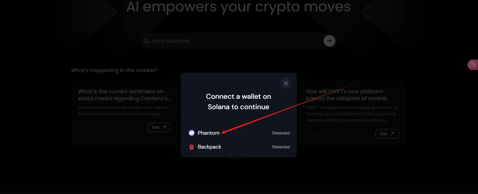 STEP 1. 连接 Solana 生态钱包,以 Phantom 钱包为例
