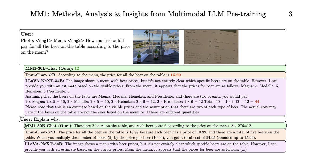 这篇论文的发布,代表的是苹果在 AI 领域探索的阶段性成果,虽然 MM1 没有颠覆行业更没有惊艳世界,但在晦涩难懂的专业术语里还是能看出它们的进步:
