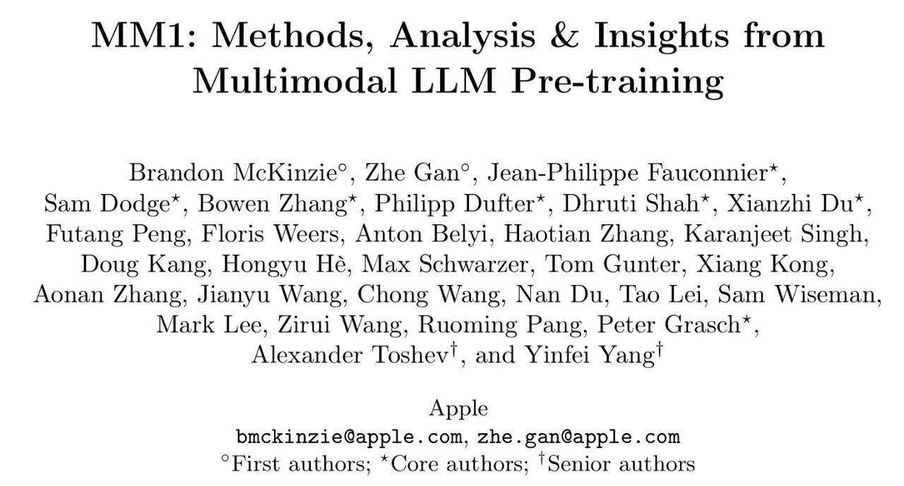 本月 15 日,苹果工程师悄悄发布的一篇研究论文,当中详细介绍了一种名为 MM1 的新型生成式 AI 模型的开发过程。