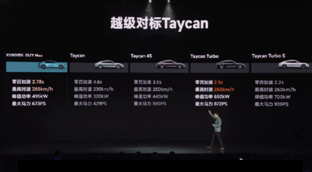 在科技巨头小米进军汽车领域的首个重要时刻,小米汽车董事长雷军在最新发布会上宣布,小米首款汽车SU7以其卓越的性能和出色的设计,成为目前50万以内速度最快的量产车,最高车速可达265km/h,直逼百万级豪车。雷军更是直言不讳地表示,小米首款汽车性能对标保时捷taycan,力求在性能表现上与保时捷Taycan一较高下。