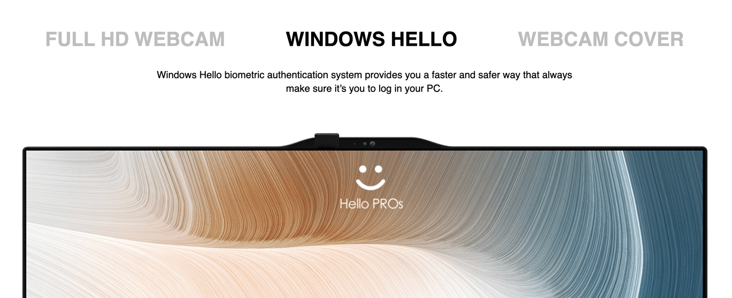 该系列电脑均配备 1080p IPS 屏幕,250 尼特亮度,对比度 1000:1;自带 1080p 网络摄像头,支持 Windows Hello 人脸识别,带物理隐私遮挡。