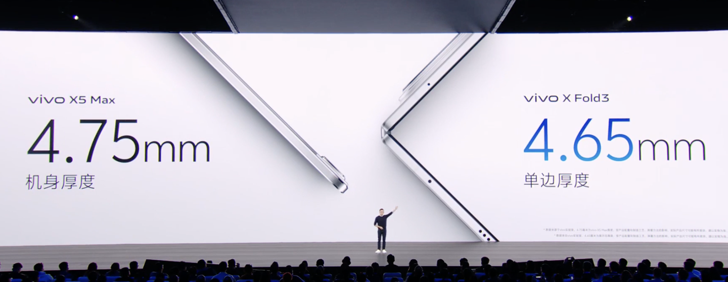 而在厚度方面,vivo X Fold3 单边厚度为 4.65mm,比此前 vivo X5 Max 手机还要薄,官方表示,vivo X Fold3 系列手机握持在手中,和传统的直屏旗舰机无异,而展开之后,由于重量被分布,更呈现出来少有的轻薄感。