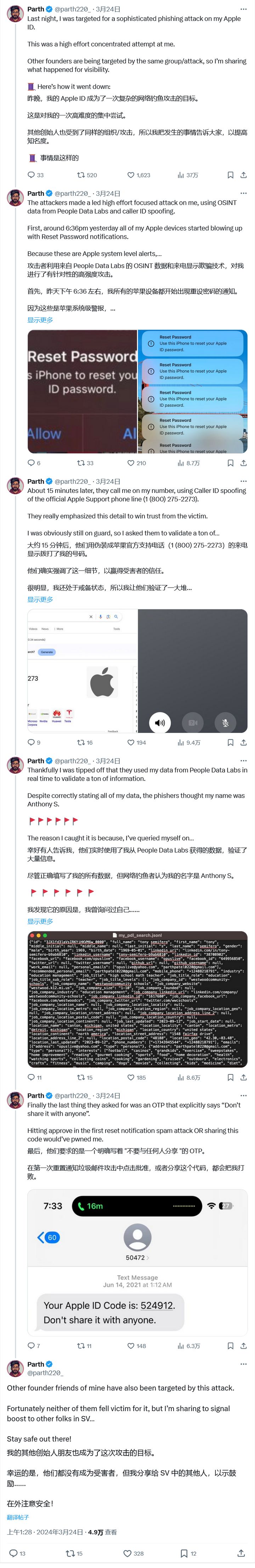 如果 iPhone 用户决定不响应这些提示通知,黑客后续会伪装成为苹果售后人员,告知称系统检测到用户设备受到攻击,并要求用户提供短信验证码。