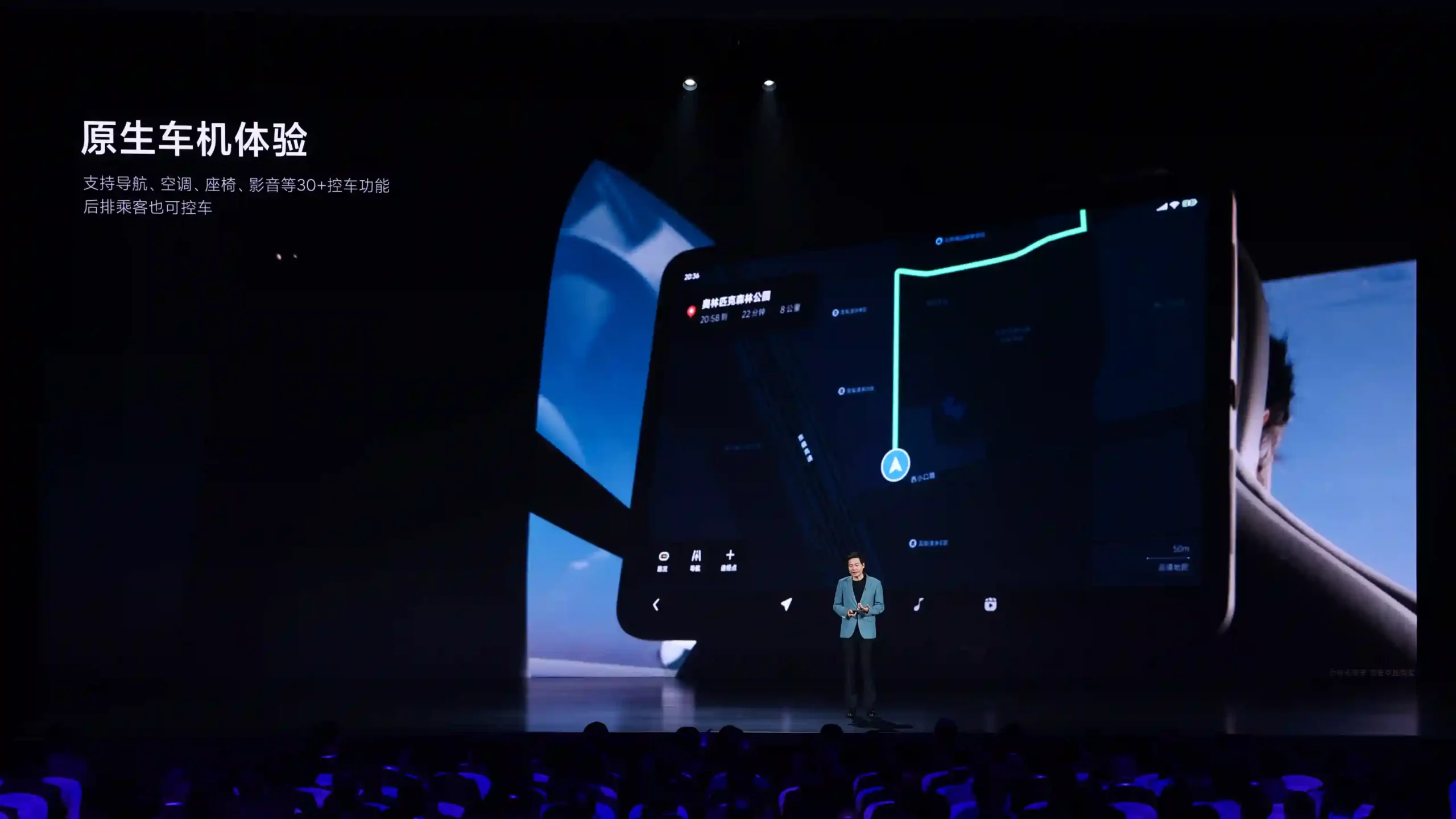 小米澎湃智能座舱在设计之初就将手机、平板视为座舱的一部分,实现多端一体化原生设计。手机与车机无感连接,手机上常用 App 可一键 PIN 到车机上,后排扩展屏上的平板可自动切换至原生控车桌面,实现导航信息实时同步,自由调整空调、座椅加热、全车音乐等功能。