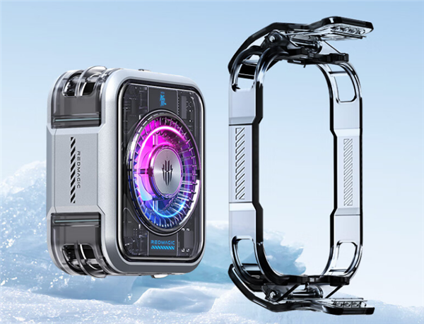 在外观设计上,红魔散热器5 Pro延续了经典的透明设计,新增了物理开关,操作更加便捷。同时,它采用了强力磁吸设计,可以轻松吸附在手机背面,支持苹果iPhone 12及以上系列机型。此外,用户还可以使用卡扣组件,将散热器变身为传统的背夹式散热器,满足不同用户的需求。