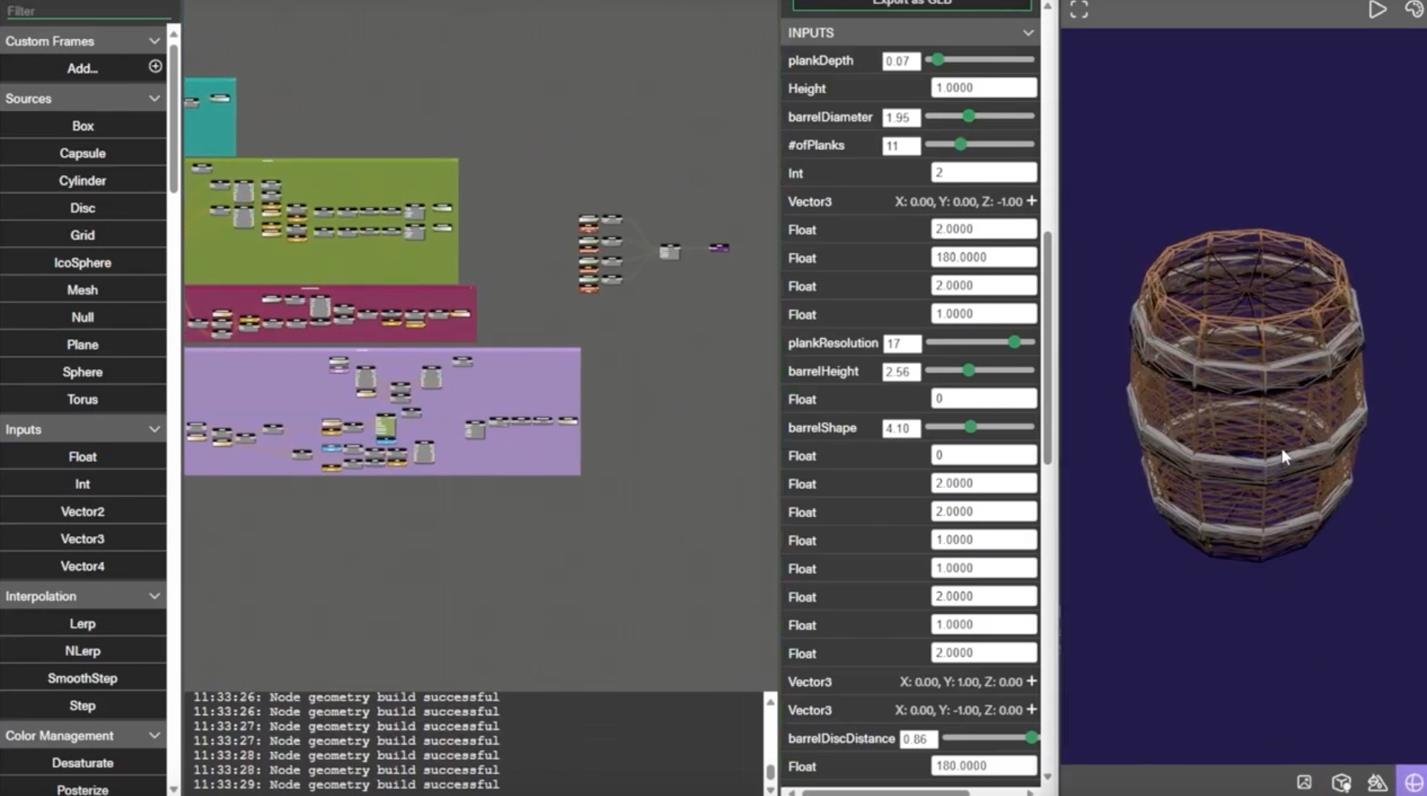 Babylon.js 7.0版本中最为引人注目的新特性之一是几何节点(Node Geometry)。通过引入非破坏性节点树系统,开发者能够更方便地创建程序化几何,极大地提升了创作的灵活性和效率。这一更新为开发者提供了更广阔的空间,使他们能够打造出更为丰富和独特的3D图形效果。