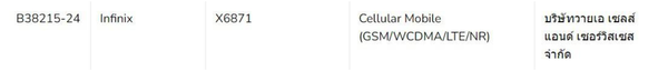 如上所示,NBTC的认证列表中虽然只提到了设备型号X6871,并未直接注明其品牌名称。但根据最新的报道,可以明确得知,这款型号为X6871的设备将以“Infinix GT 20 Pro”的品牌名在市场上亮相。