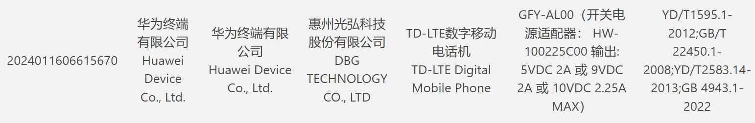 IT之家 3 月 28 日消息,日前,一款型号为“GFY-AL00”华为新品通过了国家 3C 认证,从产品认证名称(TD-LTE 数字移动电话机)来看,应该是一部 4G 手机。