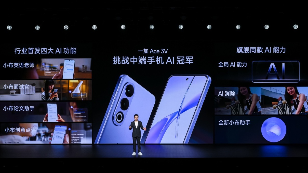 同一天发布的小米Civi 4 Pro和一加Ace 3V成为了无形之中的对手,前者首次以「Pro」后缀登场,带来了徕卡影像、澎湃T1芯片;而后者则是打出「AI手机」的口号,将AI带到中端市场。