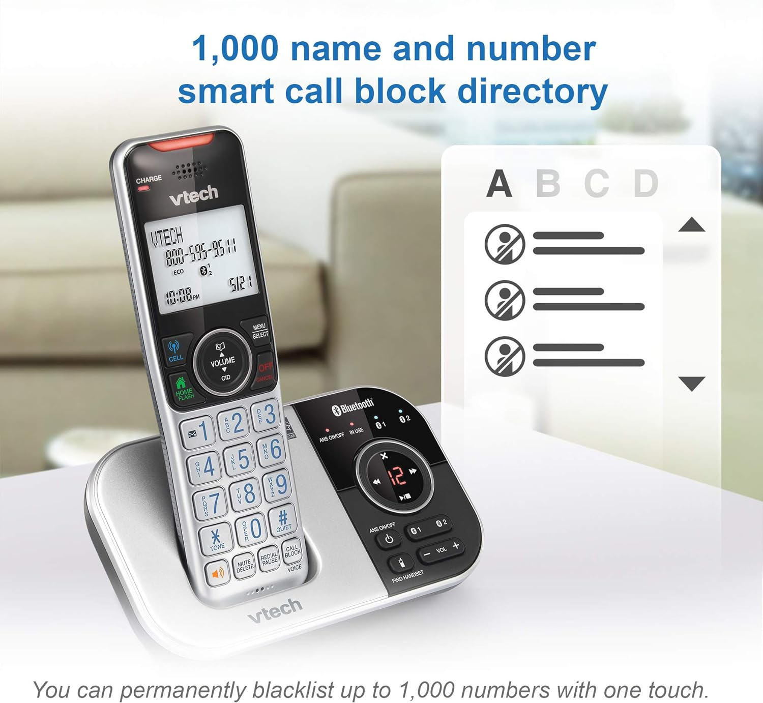 - 一键阻止骚扰电话:您可以立即阻止不想接听的来电,并永久性地将多达1,000个号码列入黑名单。