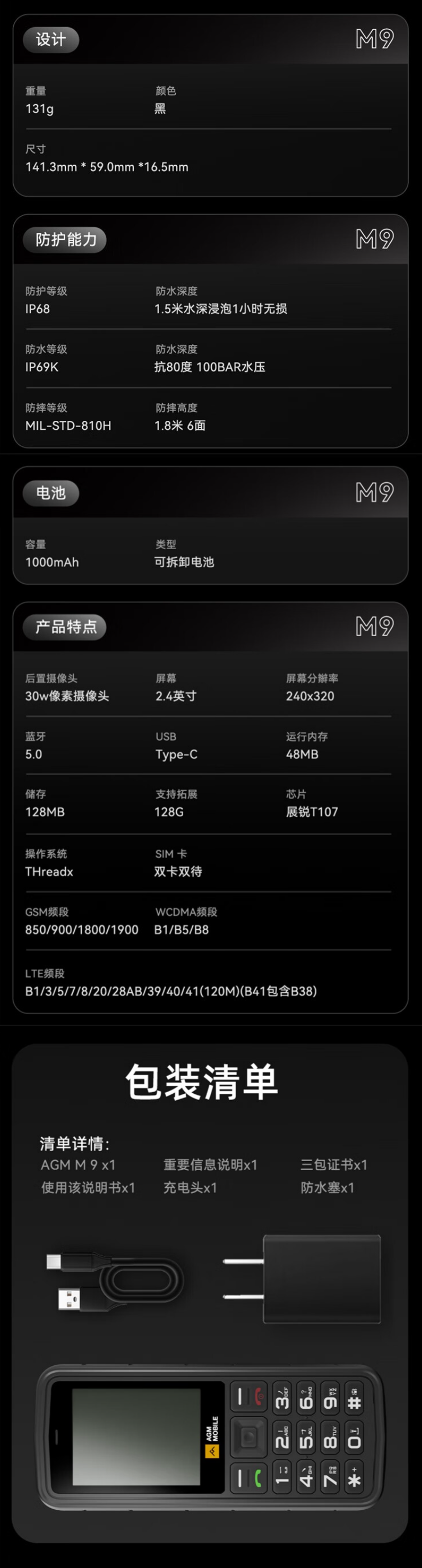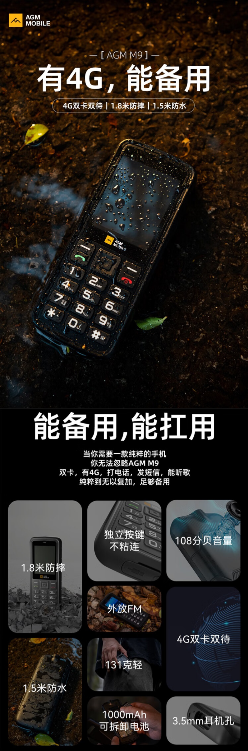 文章来源于互联网:IT之家-AGM 推出三防功能手机 M9:4G 全网通、1.8 米防摔 / 1.5 米防水,199 元