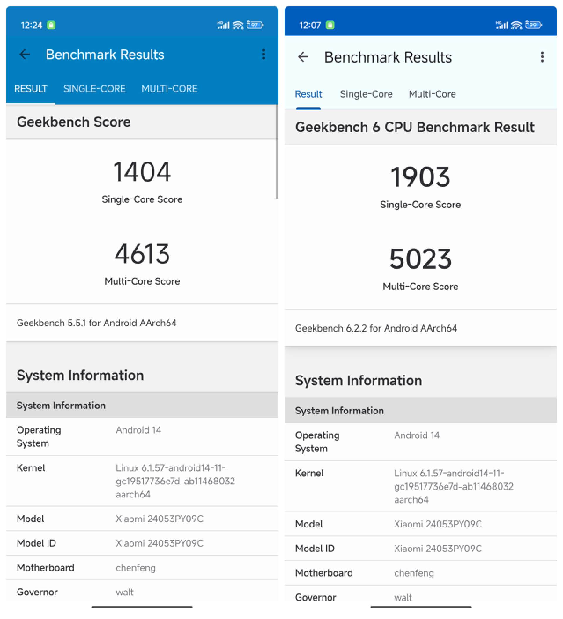 在 GeekBench6 跑分中,实测小米 Civi4 Pro 单核 1903,多核心 5023 分。作为对比,某骁龙 8 Gen3 机型跑分为单核 2269 分,多核 6871 分。
