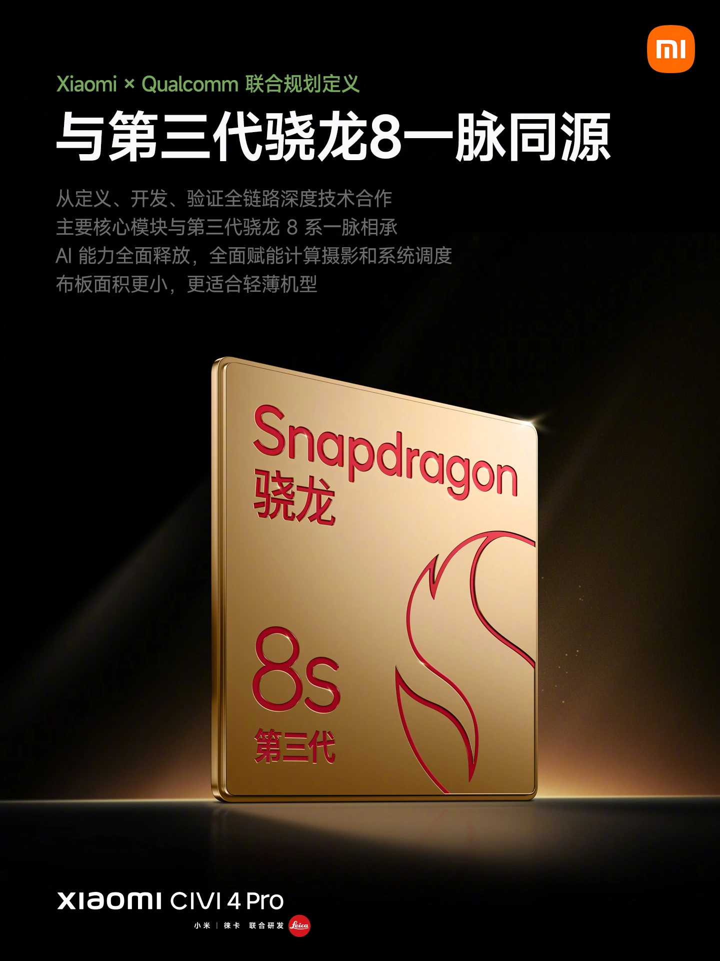 所以,在第三代骁龙 8s 的全方位赋能下,小米 Civi4 Pro 的 AI 体验也更上一层楼。