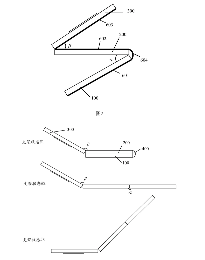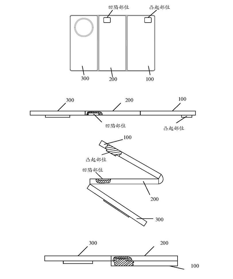 - 多个壳体可以不等厚,降低了设备在折叠状态下的厚度,也使其重量更轻,从而可以给用户提供更好的握持手感。