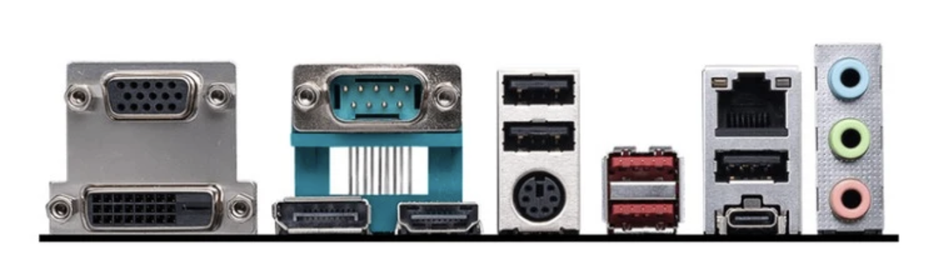 接口方面,这款主板提供 2 个 USB-A 3.2 接口、3 个 USB-A 2.0 接口、1 个 USB-C 3.2 接口、1 个 RJ45 接口、1 个 VGA 接口、1 个 DVI-D 接口、1 个 DP 接口、1 个 HDMI 接口、1 个 COM 串口、1 个 PS / 2 接口。