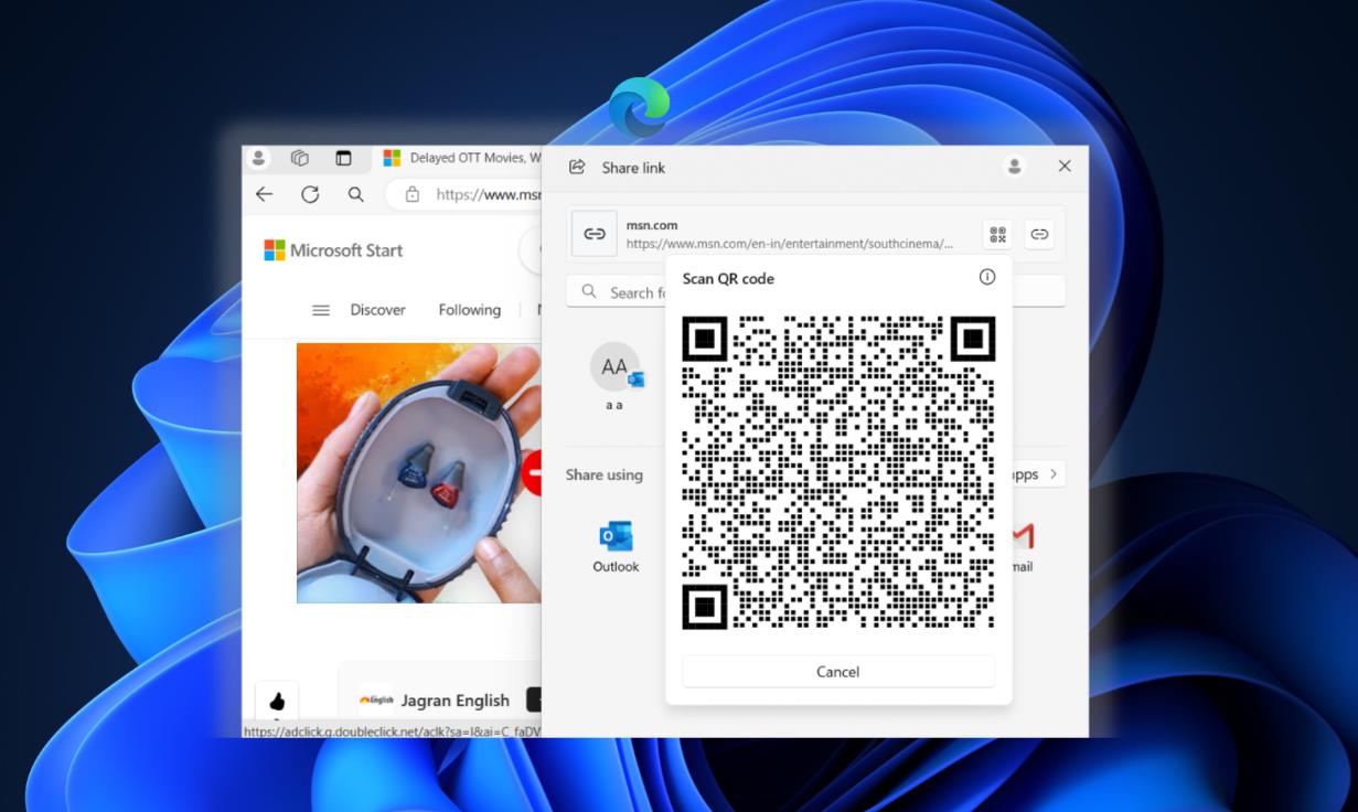 微软正在 Windows 11 的共享菜单中尝试使用二维码生成器来共享链接、文件或媒体。在包括 Edge 在内的任何 Windows 应用程序中点击 Windows 共享选项后,都会出现二维码图标。