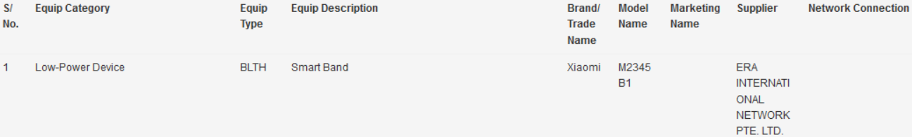 IT之家 4 月 5 日消息,日前,一款型号为“M2345B1”的终端产品现身新加坡 IMDA 数据库中,预计为即将推出小米手环 9。