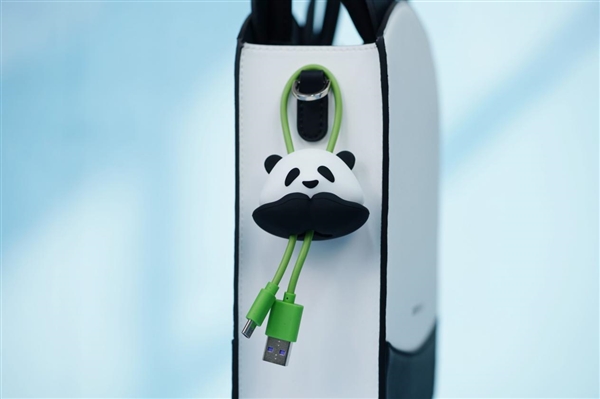 手提包是个大大的熊猫头,而数据线做成了竹子的绿色,非常可爱。