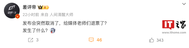 除此之外,博主 @差评帝 昨日发帖“发布会突然取消了,给媒体老师们退票了?发生了什么?”暗示华为近期发布会取消。