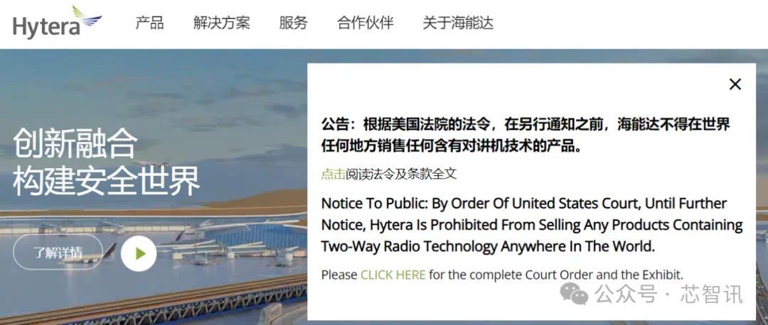 文章来源于互联网:凤凰网-海能达突遭美国法院禁令,对讲机产品被全球禁售!官方回应来了