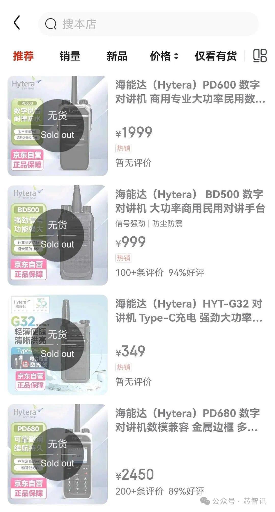 目前,海能达在国内购物平台的相关产品已全面下架。