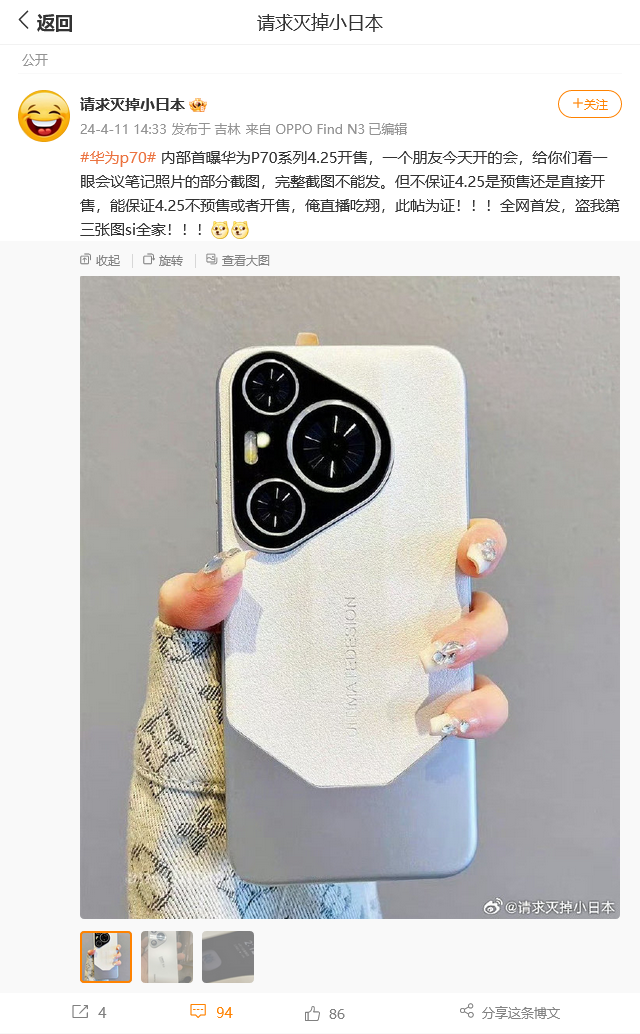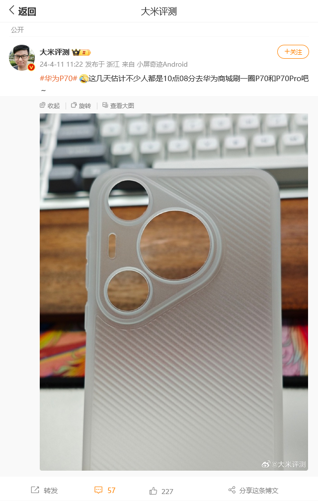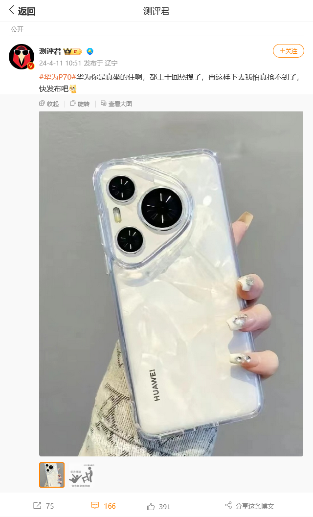 IT之家查询微博、X 平台,还发现了不少关于华为 P70 手机的手机保护套等照片 (图源见左上角账号):