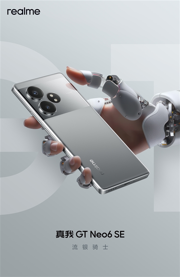 据了解,realme官方此前已经公布了真我GT Neo6 SE的部分外观细节。其中有一个配色为流银骑士,采用光哑拼接设计,具有金属质感。
