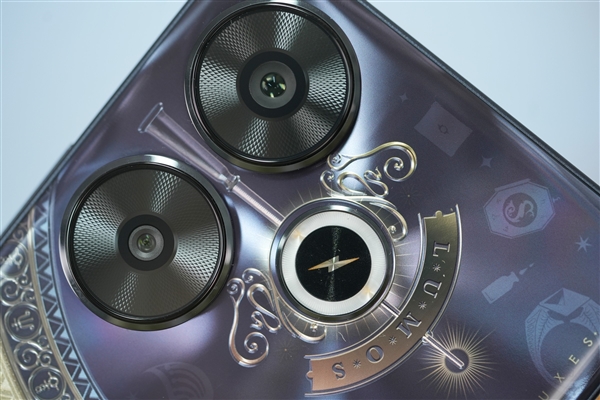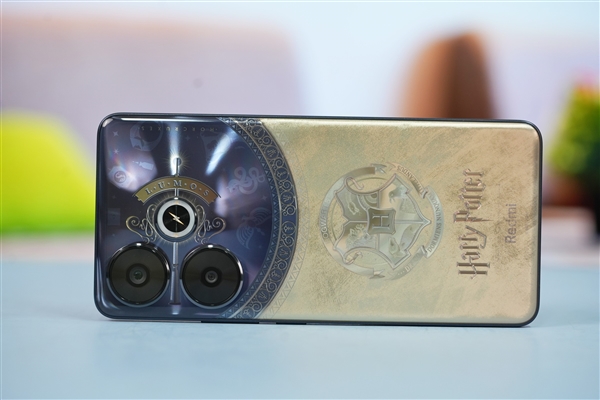 手机本体也进行了深度定制,Redmi Turbo 3哈利·波特版采用了金色与暗色的撞色设计,机身上半部分将相机模组与光明咒L·U·M·O·S实现巧妙融合,标志性的闪电伤疤浮现于天使环闪光灯之上,营造出极强的魔法氛围感。