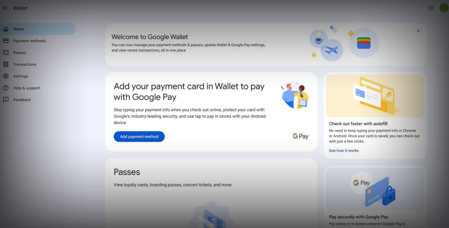 新的Google Wallet网站在设计上与Google Pay保持了高度的一致性,采用了现代化的界面设计,让用户能够快速熟悉并上手。然而,在细节之处,Google钱包进行了微妙的调整,如重新布局的页面元素和更直观的交互方式,旨在进一步提升用户体验。