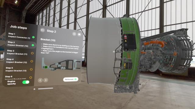 IT之家注意到,苹果近日在一篇新闻稿中提到,皇家荷兰航空公司将利用 Vision Pro 的 Engine Shop 软件,让维修人员在真正接触飞机引擎之前进行模拟培训。通过“覆盖”在 3D 引擎模型上的维修指南,Vision Pro 可以帮助维修人员减少失误,提高工作效率。