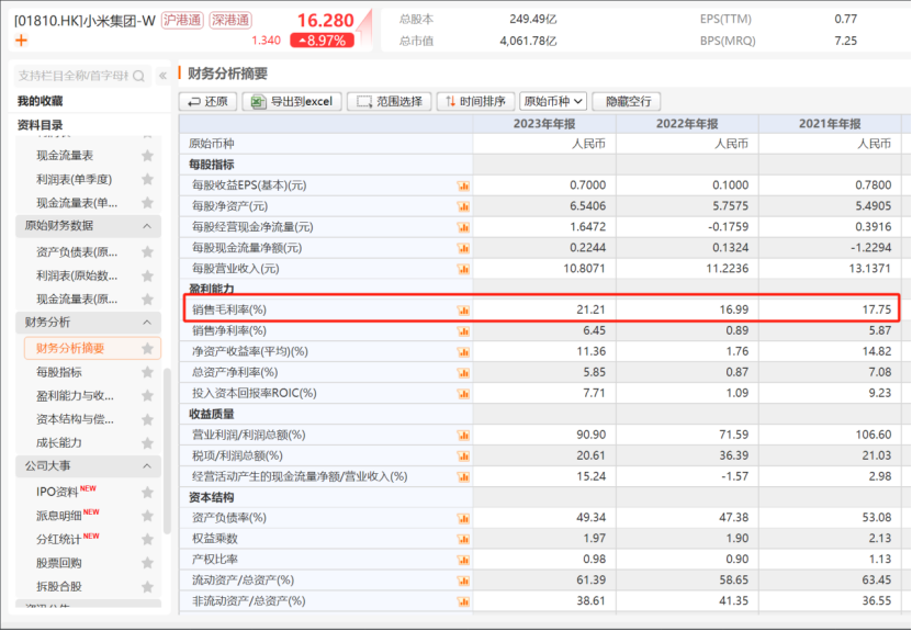 毛利率吊打小米