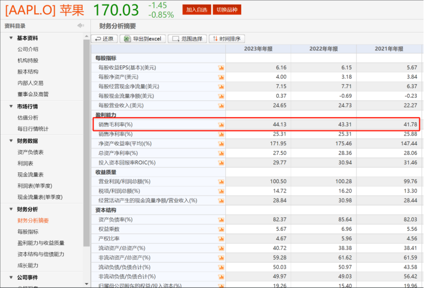 此外,华为毛利率同样领先老对手苹果,后者在2022-2023年的毛利率分别为43.31%和44.13%,分别落后华为0.58和2.08个百分点。