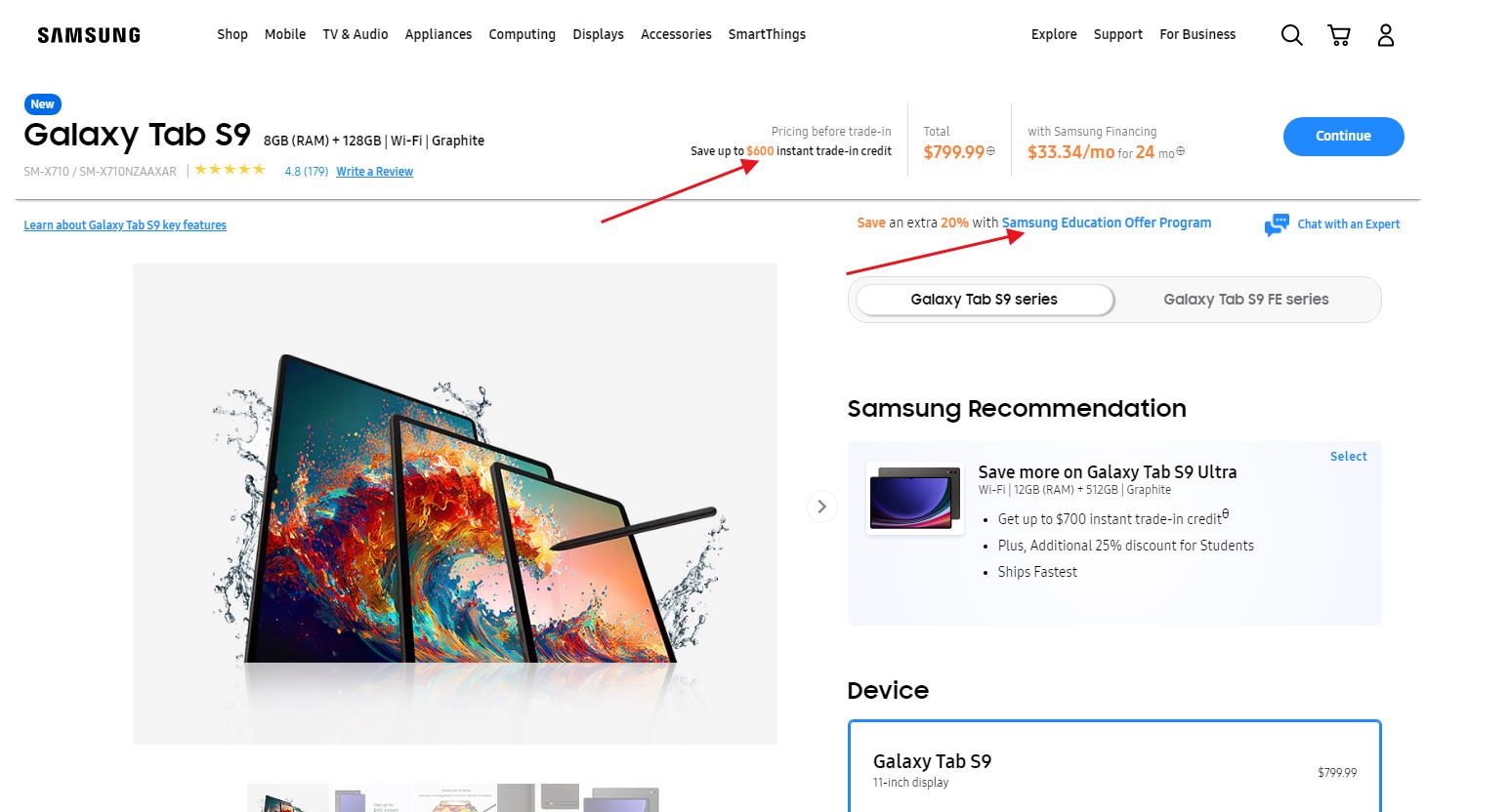 文章来源于互联网:科技讯-Galaxy Tab S9大优惠 美国Samsung Store这样买最高优惠760美元,仅售39.99美元