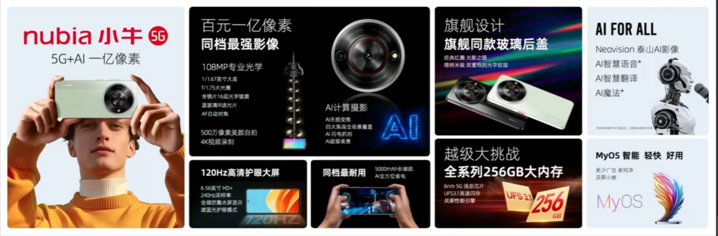 IT之家 4 月 9 日消息,在目前正在进行的努比亚 2024 春季新品发布会中,努比亚小牛 5G 手机正式登场,这款手机主打“百元 AI + 百元 5G + 百元一亿像素”,配备双面玻璃机身,号称“开启百元全能时代”,IT之家整理价格信息如下:
