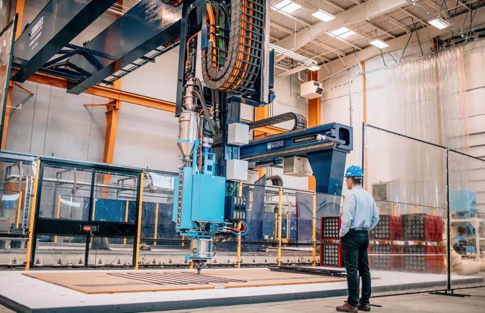 缅因大学先进结构和复合材料中心近日宣布,其研发的新型巨型3D打印机已准备就绪,采用可回收材料,有望在经济适用房建设和国防工程领域发挥重要作用。这台打印机的核心特点在于其优先考虑使用生物基材料,如木材残渣,使得制造过程更为环保和可持续。