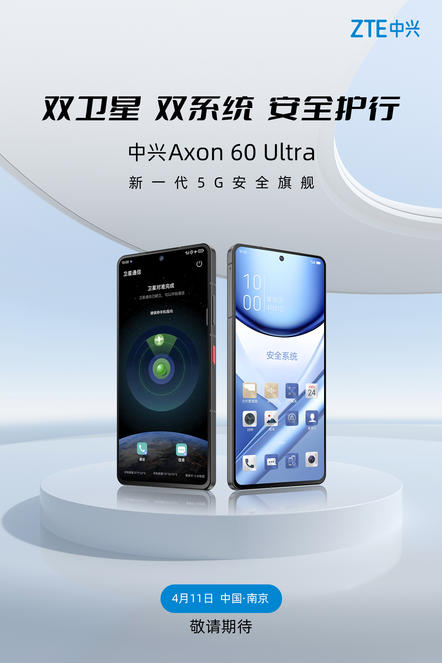 IT之家 4 月 10 日消息,中兴官方宣布,Axon 60 Ultra 手机将于 4 月 11 日在中兴行业终端春季新品发布会上发布,新机支持双卫星、双系统。