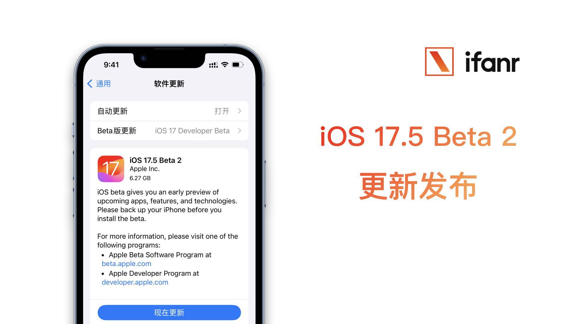 距离上次更新 14 天后,苹果现在又推送了 iOS 17.5 Beta 2 版本更新。