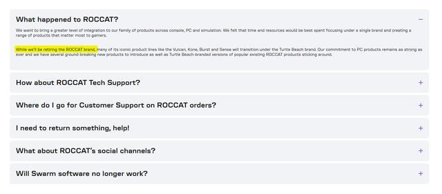 IT之家 4 月 19 日消息,德国外设品牌冰豹(ROCCAT)于 2019 年被美国音频外设品牌乌龟海岸(Turtle Beach)收购,并作为独立单位运营。