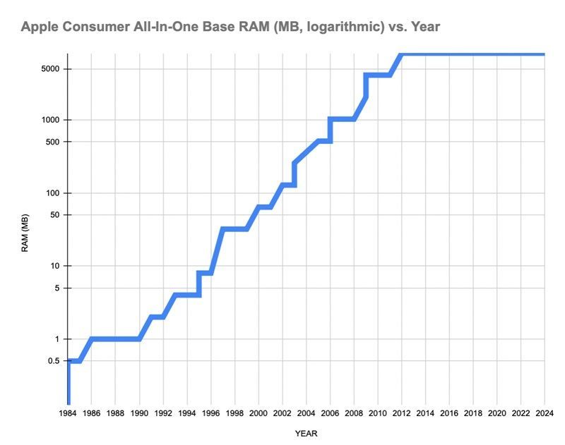 David Schaub 近日在 Mastodon 平台上发布分析论文,表示蒂姆・库克(Tim Cook)掌舵苹果公司之后,苹果基础款 Mac 的内存升级周期就已经停止了。