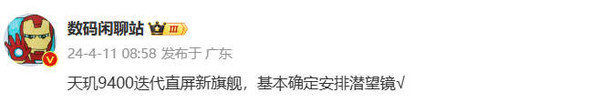 据爆料,该机将搭载联发科的天玑9400芯片。2023年底,联发科天玑9300发布,该芯片采用全大核设计,理论性能甚至强于高通骁龙8 Gen 3移动平台。而据此前消息,天玑9400为ARM公版架构,CPU直接升级为4 x Cortex-X5超大核+4 x Cortex-A730大核,并采用台积电3nm工艺,预计在2024年下半年上市。