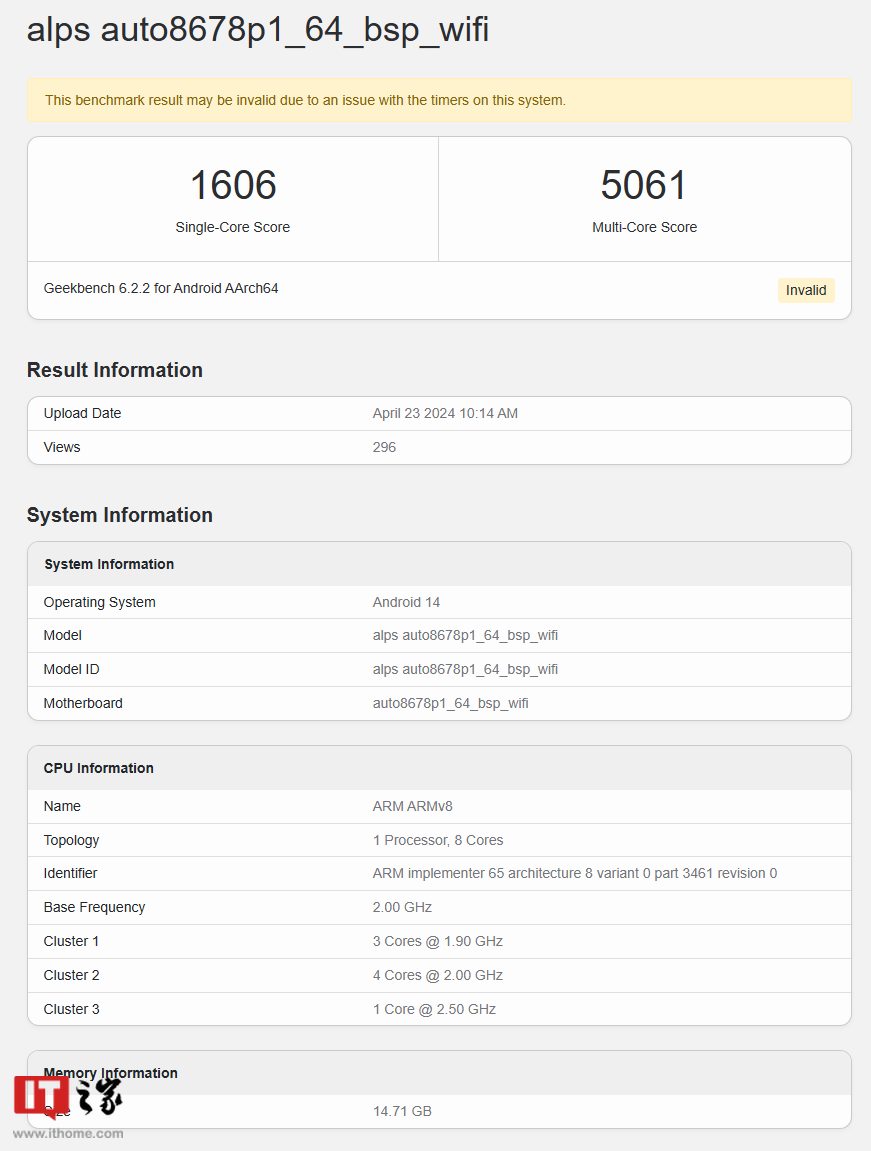 IT之家 4 月 30 日消息,Geekbench 数据库中出行了一个搭载联发科工程芯片的测试机,@Nguyen Phi Hung 从名称猜测是联发科刚刚发布的天玑旗舰座舱芯片CT-X1,也就是联发科首款 3nm 芯片,性能超高通 SM8295 平台 30% 以上。