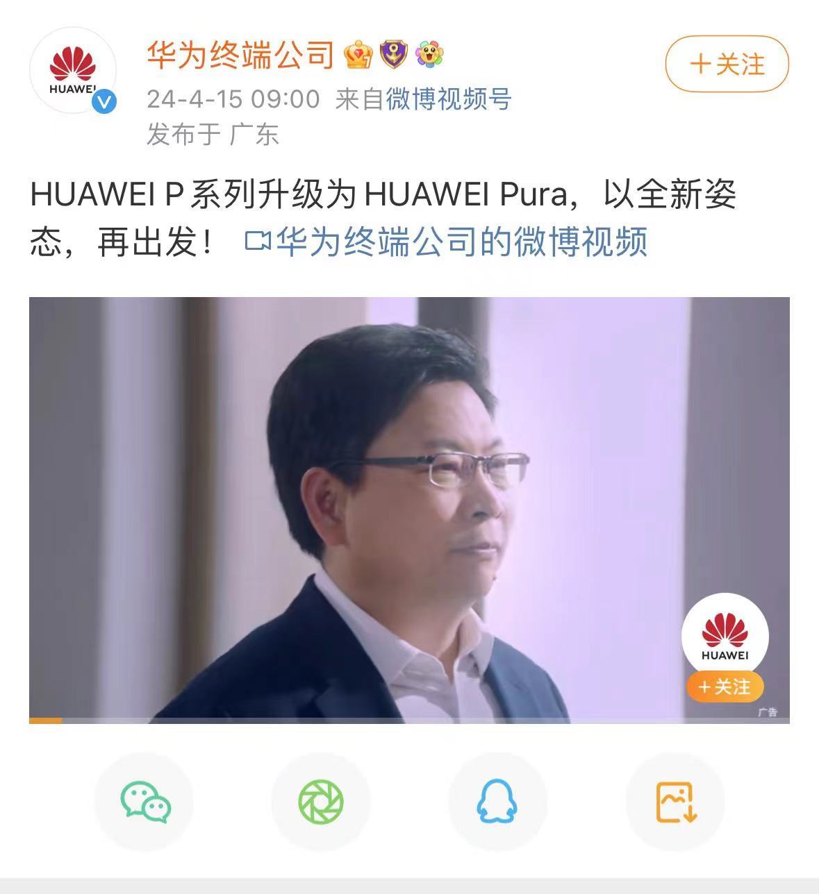 凤凰网科技讯 4月15日,华为终端官方微博于今日上午九点宣布,P系列正式升级为Pura系列。文中写道,“HUAWEIP系列升级为 HUAWEIPura,以全新姿态,再出发!”