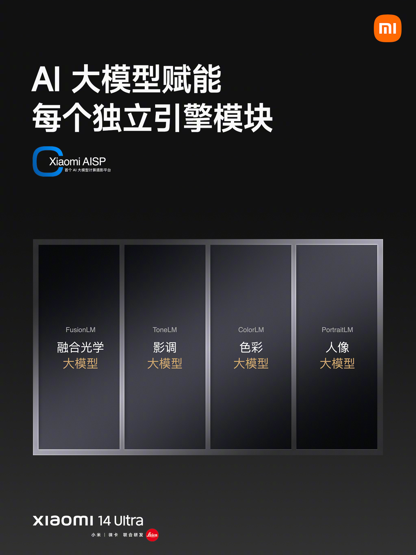 在今年 2 月的小米 14 Ultra 暨「人车家全生态」新品发布会上,小米影像大脑升级为“(全球)首个 AI 大模型计算摄影平台”,定名为“Xiaomi AISP”,号称通过小米澎湃 OS 深入硬件层,全面整合 CPU、GPU、NPU 和 ISP 的算力,算力可达 60TOPS。