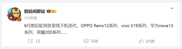 不过,从近期消息来看,nova 12系列或许没有以SE命名的产品发布了。根据知名爆料人@数码闲聊站 通过微博表示,6月前后轮到各家线下机迭代,OPPO Reno12系列、vivo S19系列、华为nova13系列、荣耀200系列……