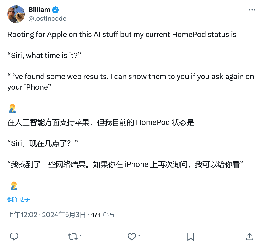 IT之家 5 月 3 日消息,根据网友反馈 HomePod 上的 Siri 目前出现故障,无法回答用户提出的“现在几点了”问题,并引导用户跳转到 iPhone 上获取答案。