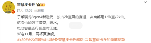 【CNMO科技消息】由于Redmi K70系列展现出了极高的性价比,不少消费者对K80系列充满了期待。而近日,CNMO注意到,知名数码博主“智慧皮卡丘”为我们带来了关于Redmi K80系列的最新爆料。