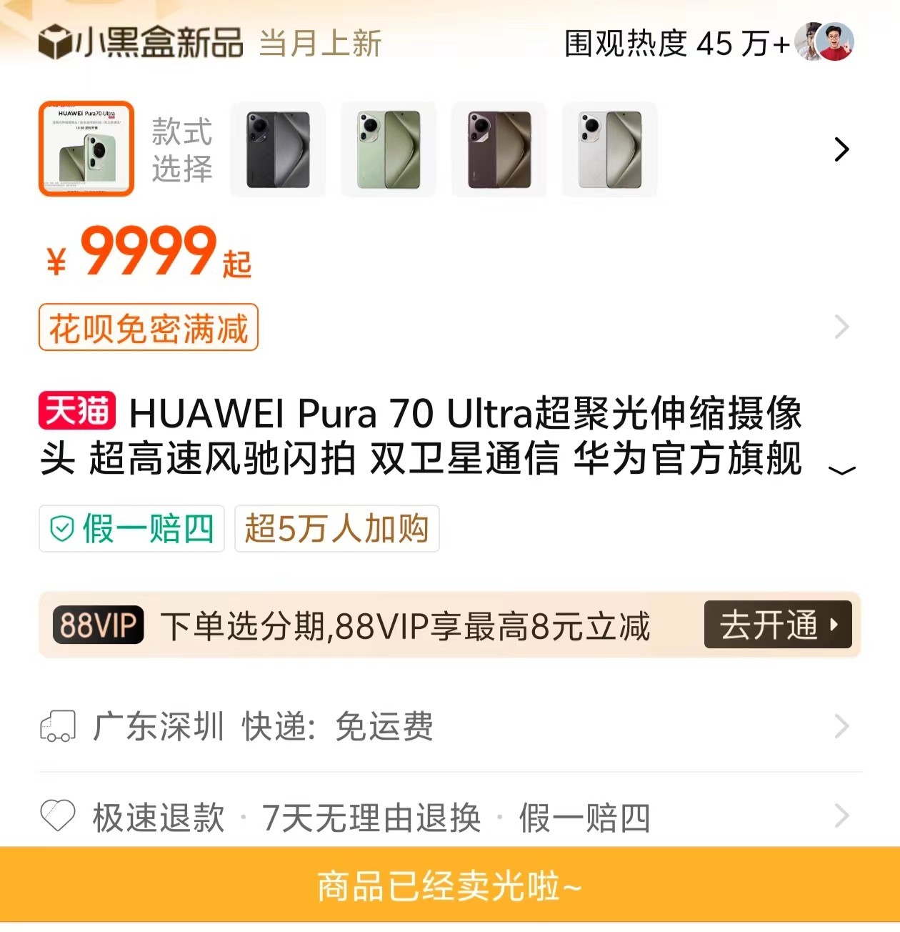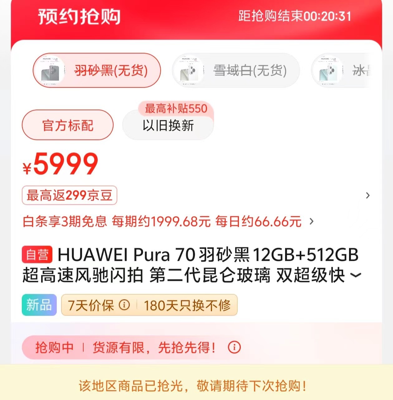 文章来源于互联网:凤凰网-华为Pura 70系列正式开售:各大购买平台已售罄