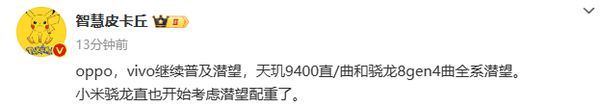 【CNMO科技消息】4月25日,CNMO注意到,爆料人士“智慧皮卡丘”透露称,OPPO、vivo、小米这三大国产手机厂商都有计划普及潜望式长焦镜头。