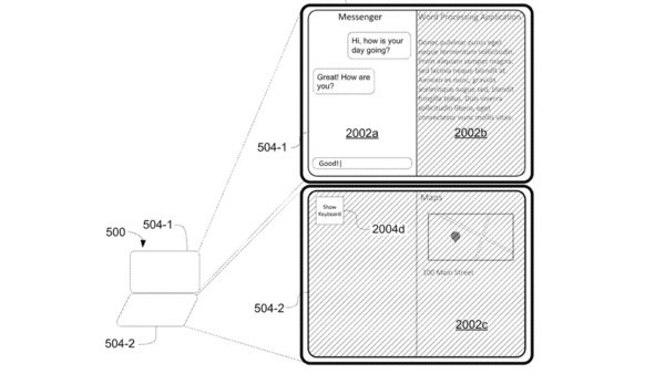 苹果在专利描述中广泛涵盖了各种设备形态,从便携通讯设备到配备触摸界面的台式机,强调了应用的普遍性。尽管如此,图示大多偏向折叠手机或平板,但也明确指出适用范围扩展至笔记本电脑乃至台式机。