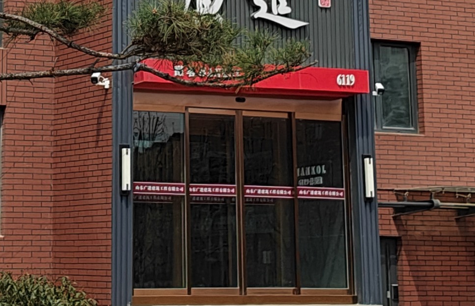 放大照片后可以明显看到,画面纹理更清晰了一些,细节也更丰富了,不过玻璃门上的文字还是不太容易分辨。